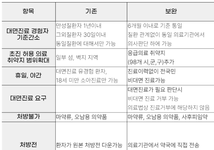 기존에는 초진이 가능한 지역이 일부 섬이나 벽지로 제한되었으나, 현재는 응급의료 취약지 98개 시, 군, 구로 확대되었습니다. 벽지 지역에서는 택배 등을 통해 약을 수령할 수도 있습니다.