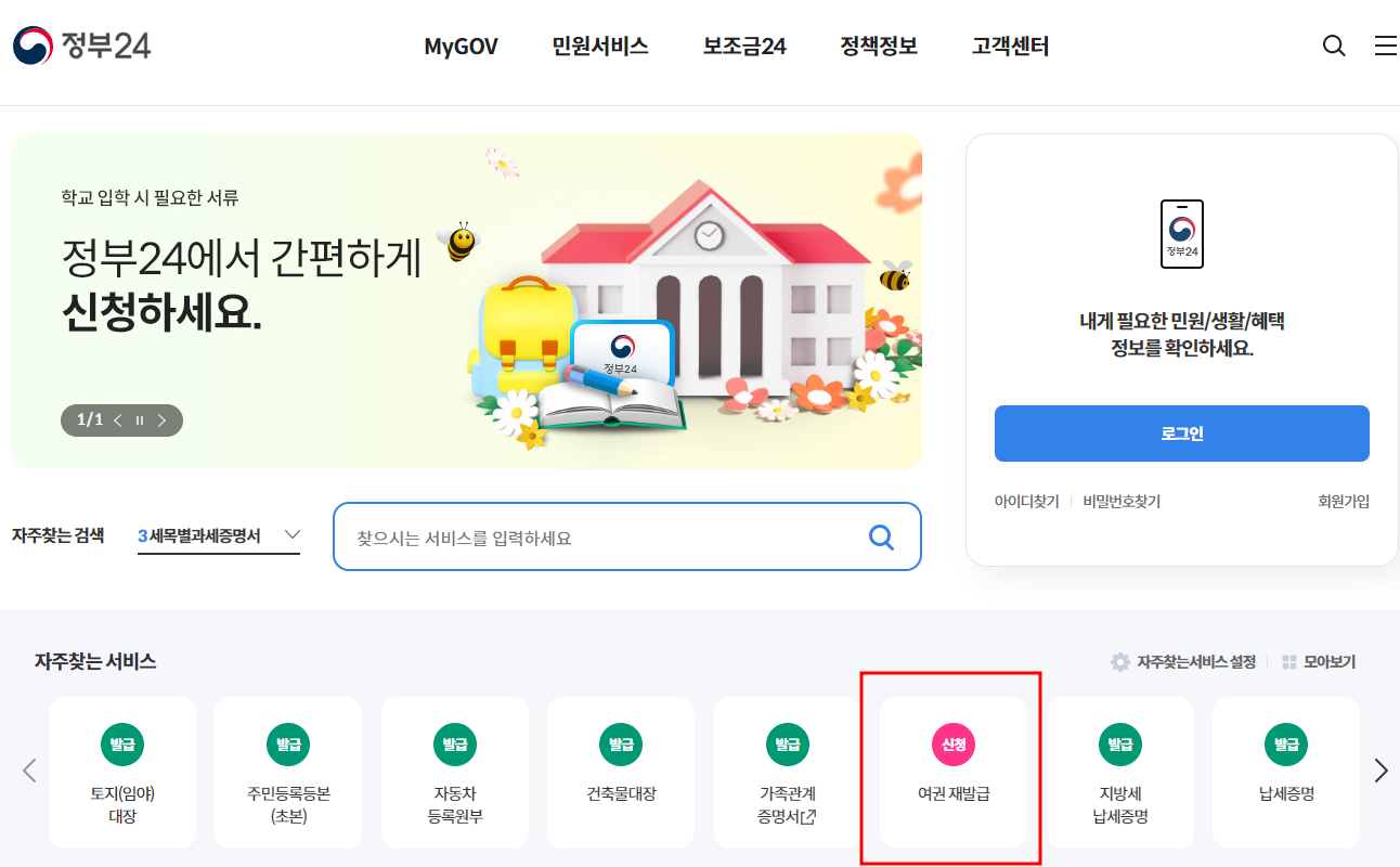 온라인으로 여권 재발급 신청은 국내 거주자는 정부24, 해외거주자는 영사민원24 홈페이지에서 신청이 가능합니다.